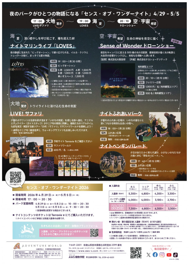 【和歌山・アドベンチャーワールド】センス・オブ・ワンダーナイト 2026